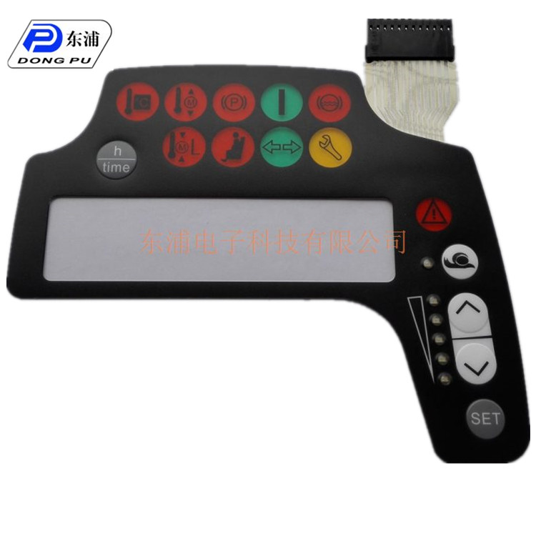 ∧ ∨ 常規汽車薄膜開關 東莞東浦薄膜開關是集按鍵功能、指示元件、儀器面板為一體的一個人機界面。主要是由面板、上線電路、隔離層、下電路四部分組成。按下薄膜開關,上電路的觸點向下變形,與下電路的極板接觸導通,手指松開后,上電路觸點反彈回來,電路斷開,回路觸發一個信號。薄膜開關結構嚴謹,外形美觀,密封性好。具有防潮濕,使用壽命長等特點。廣泛應用于電子通訊、電子測量的儀器,工業控制,醫療設備,汽車工業,智能玩具,家用電器等領域