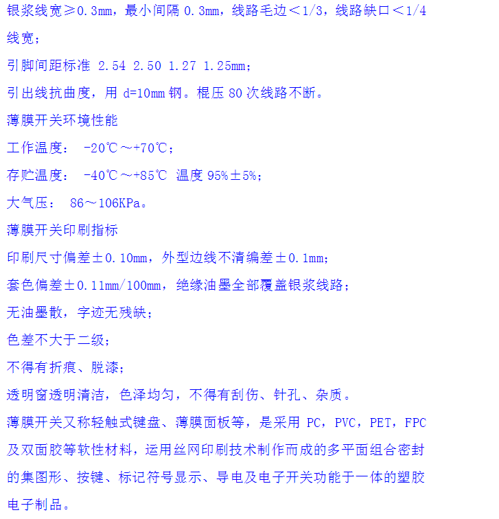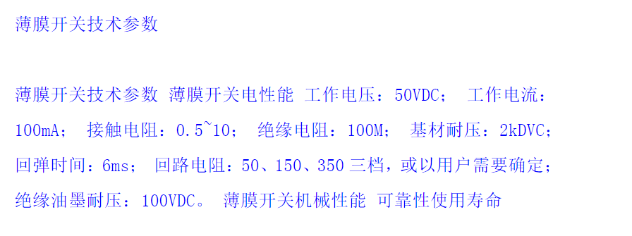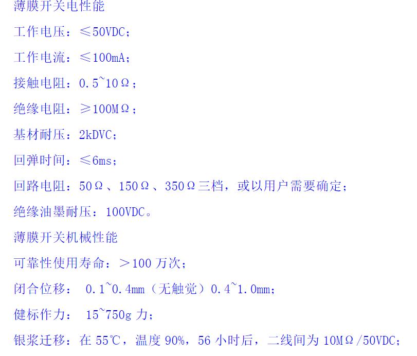∧ ∨ 滴膠面板 東浦電子專業生產薄膜開關是具有一定彈性的絕緣材料層組成的一種多層結構(平面)型(非制鎖)按鍵開關,集成線路。按鍵、指示元件、儀器面板等功能為一體。薄膜開關的動作只由彈性薄膜的垂直方向彈動實現,彈性薄膜雖然經過百萬次的蠕動,且蠕動時的幅度很小,僅為0.1-0.3MM,加之材料選擇的合理性,因此薄膜材料能夠承受一百萬次以上的大壽命而不變形,這些都是決定了薄膜開關的耐久性。