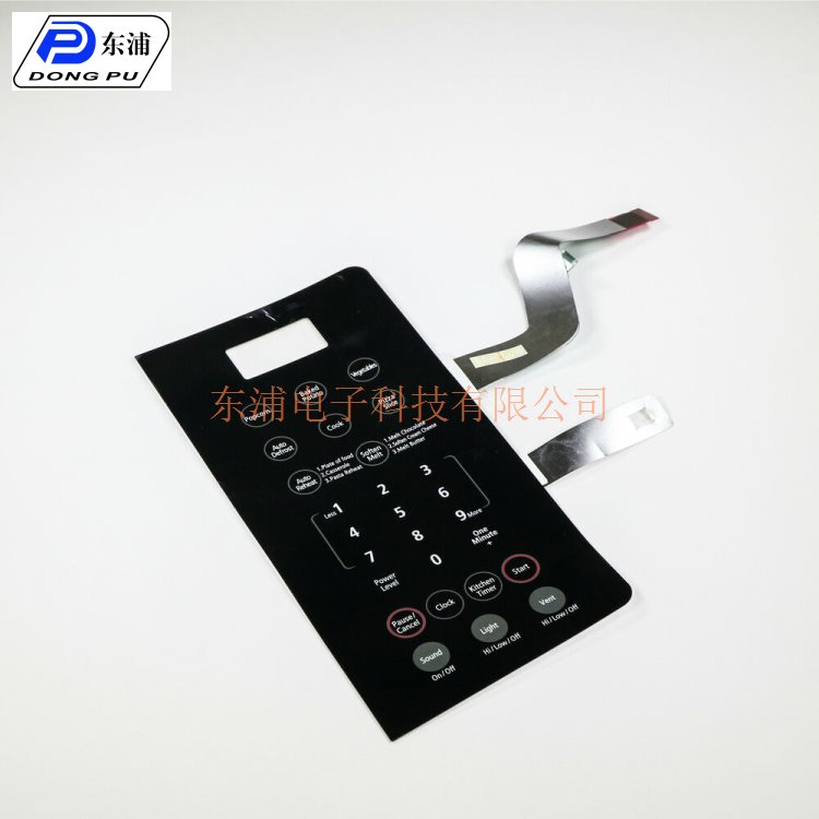 ∧ ∨ FPC平面薄膜開關(guān) 東浦電子專業(yè)生產(chǎn)薄膜開關(guān)是具有一定彈性的絕緣材料層組成的一種多層結(jié)構(gòu)(平面)型(非制鎖)按鍵開關(guān),集成線路。按鍵、指示元件、儀器面板等功能為一體。薄膜開關(guān)的動作只由彈性薄膜的垂直方向彈動實現(xiàn),彈性薄膜雖然經(jīng)過百萬次的蠕動,且蠕動時的幅度很小,僅為0.1-0.3MM,加之材料選擇的合理性,因此薄膜材料能夠承受一百萬次以上的大壽命而不變形,這些都是決定了薄膜開關(guān)的耐久性。